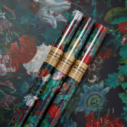 Gothic Roses Maximalist Xmas Wrapping Paper 3 Sheet Roll