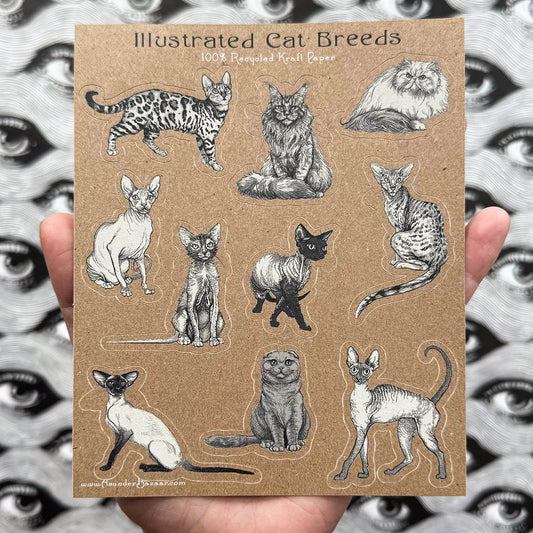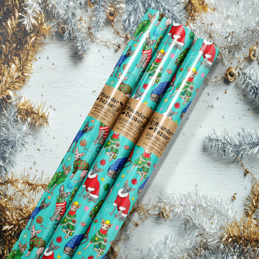 Illustrated Cat Breeds on Green Wrapping Paper 3 Sheet Roll