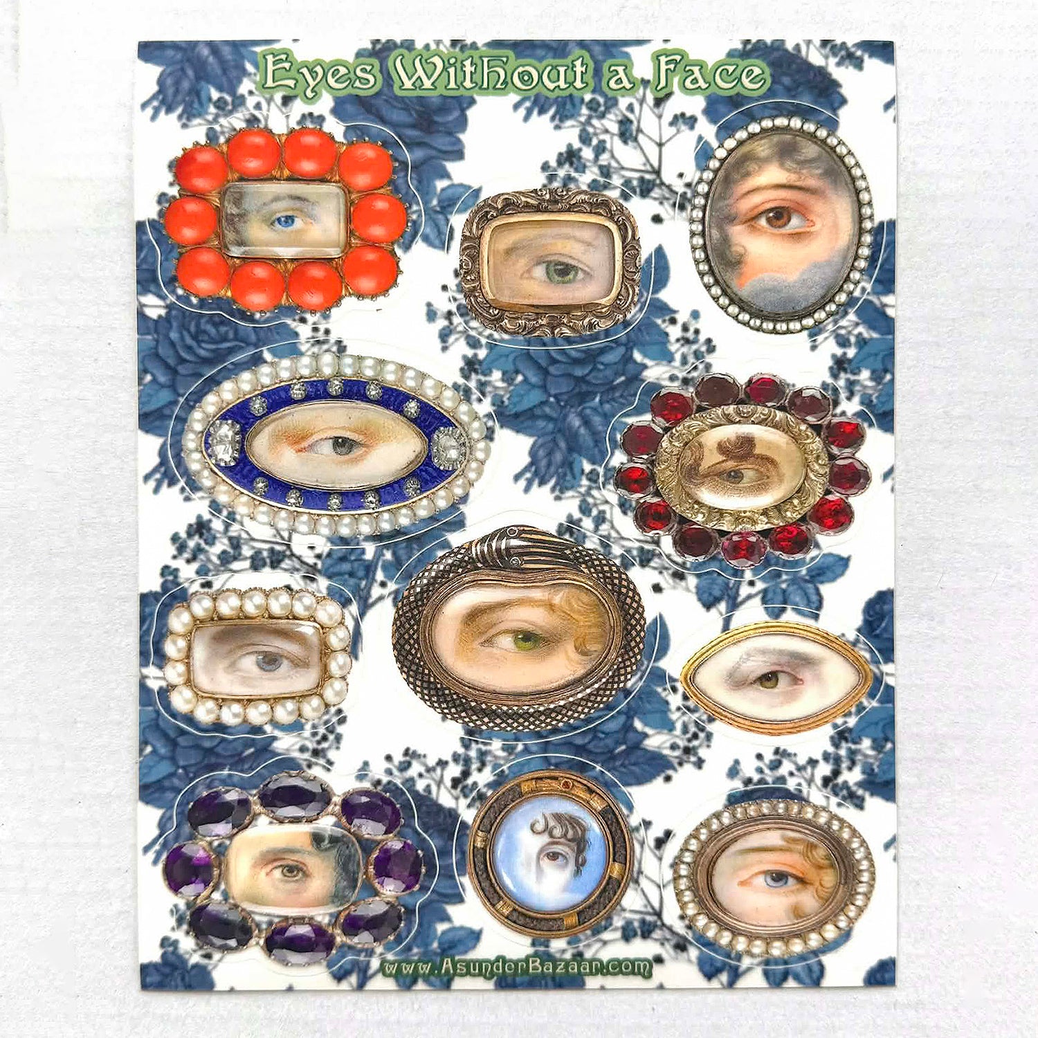 This collection of Georgian and Victorian era Lover's Eyes are available on this 5.2x6.4 inch (approximately) translucent vinyl sticker sheet with matte coating that gives it a lovely frosted look. 11 stickers total on each sheet! The sheets are sold individually and are each packaged in a clear plastic sleeve.