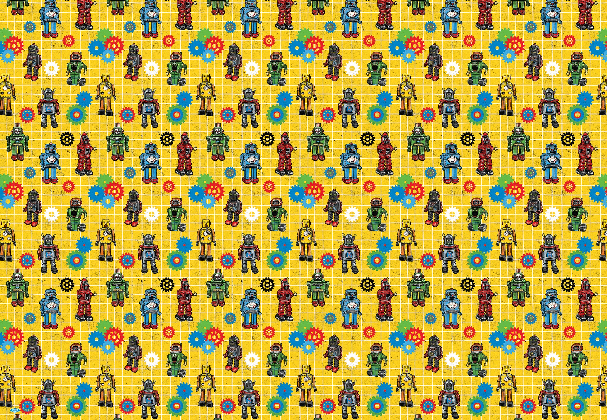 Retro Robots Wrapping Paper 3 Sheet Roll