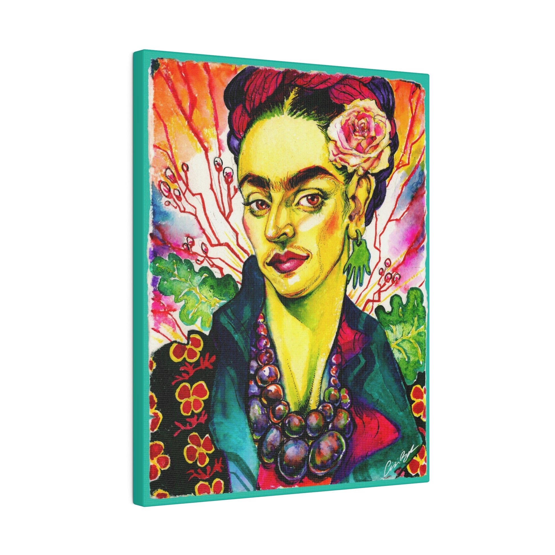 This matte canvas print features the Original Ink Illustration"Frida" by Cristina Beller. Each matte canvas comes with back hanging already included for convenient placement. The frame is made with profile radial pine that is ethically sourced from renewable forests.
