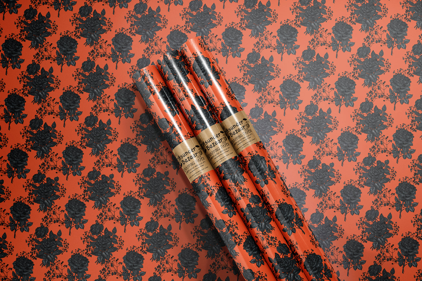 Gothic Halloween Roses Wrapping Paper 3 Sheet Roll
