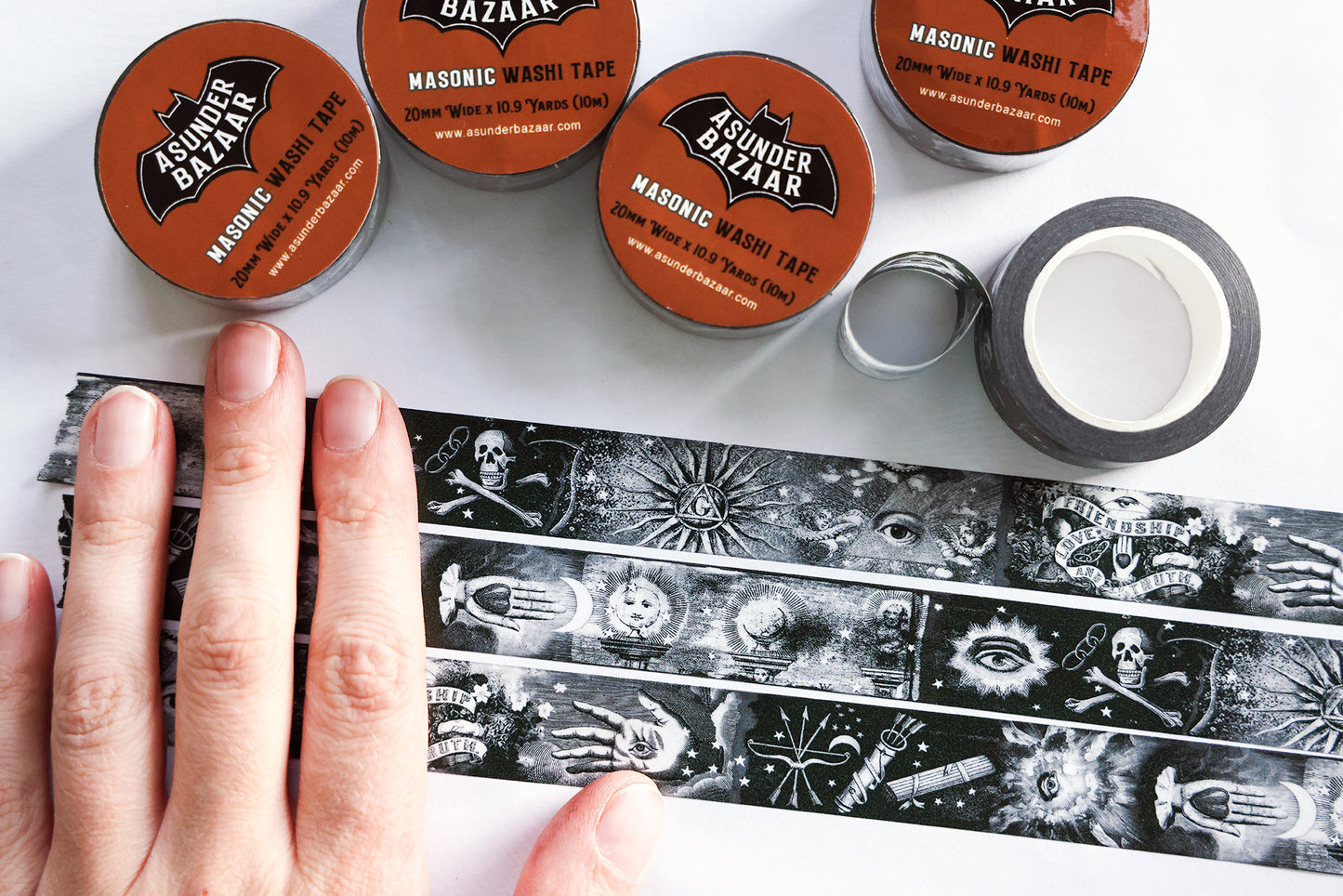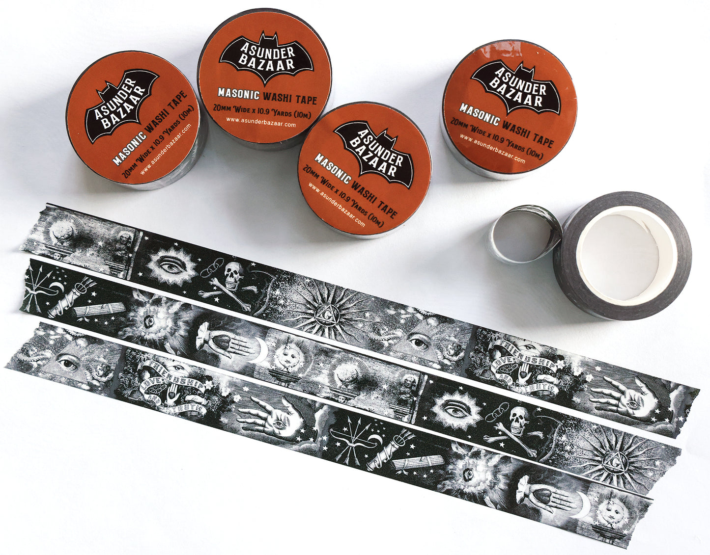 Masonic Black and White Washi Tape 20mm Wide by 10 meters in length