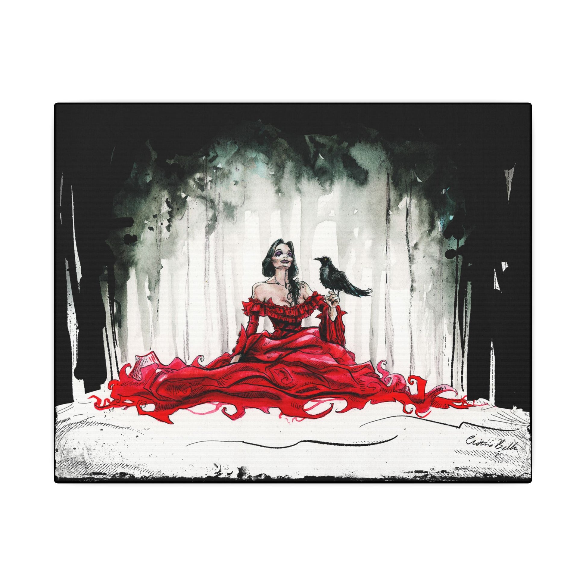 This matte 10x8in canvas print features the Original Ink Illustration "Raven" by Cristina Beller. Each matte canvas comes with back hanging already included for convenient placement. The frame is made with profile radial pine that is ethically sourced from renewable forests.