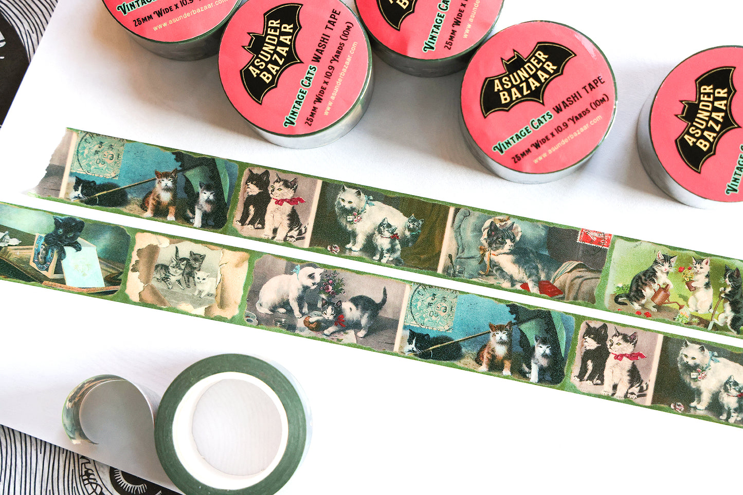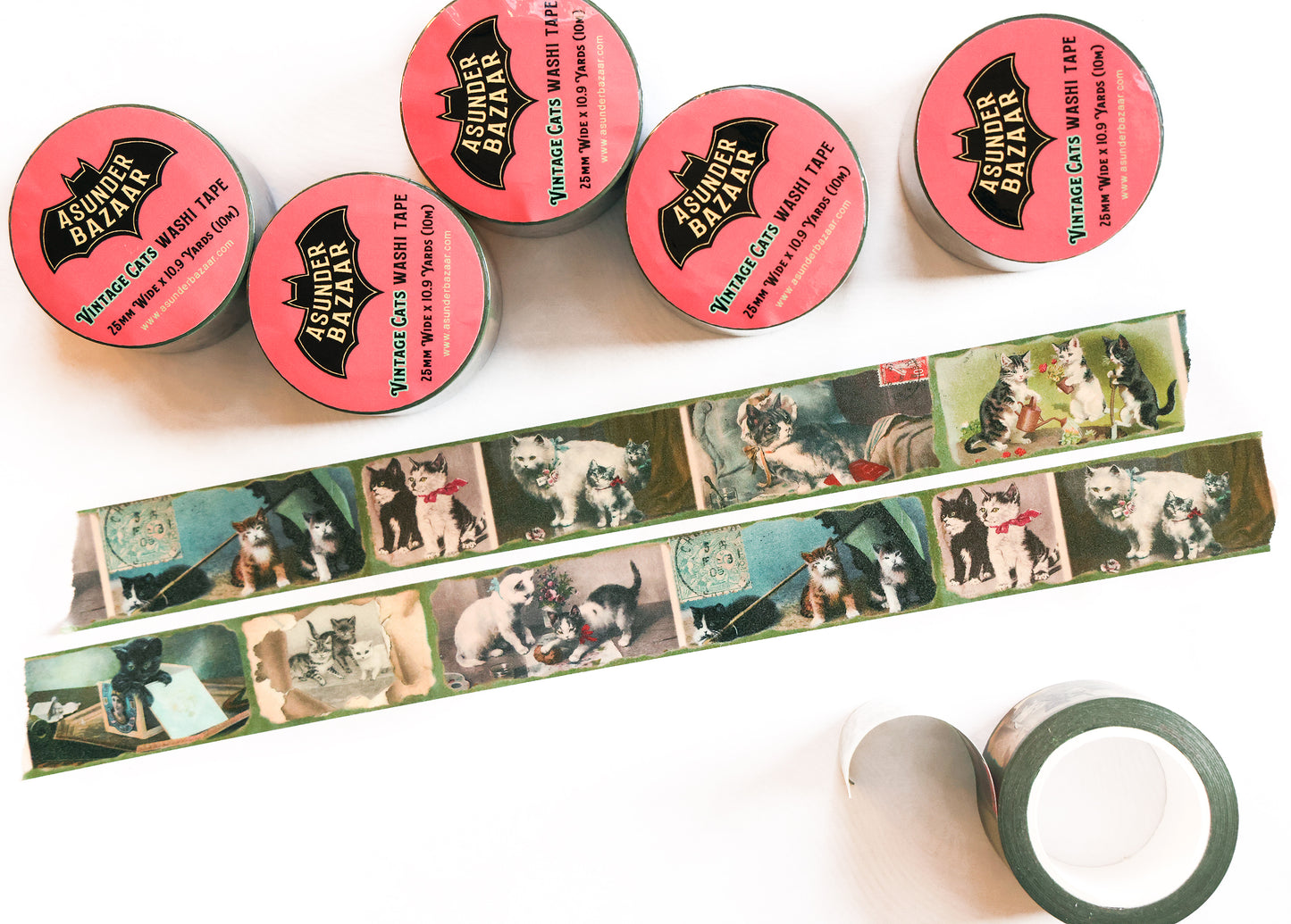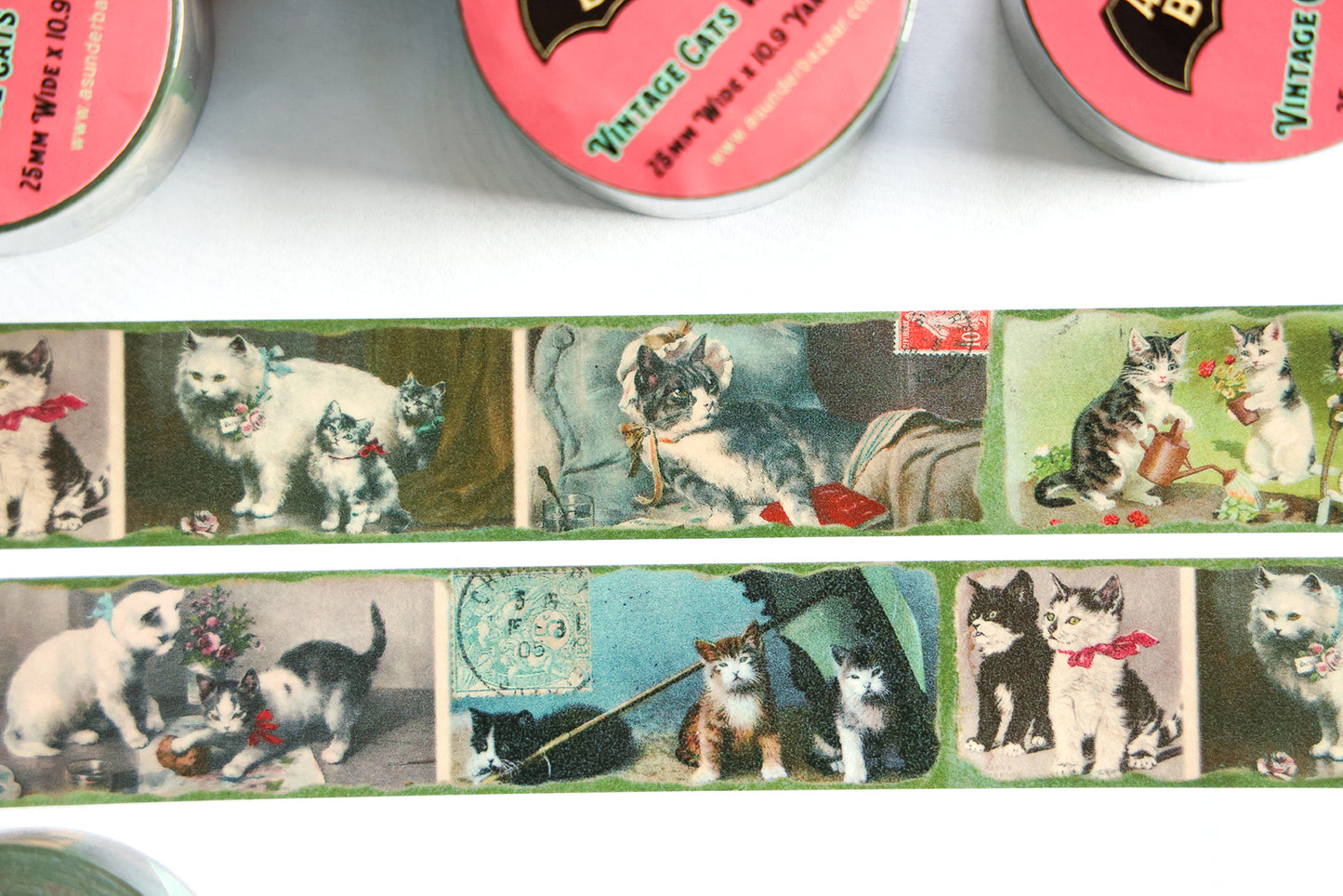 Vintage Cats Washi Tape 25mm Wide by 10 meters in length