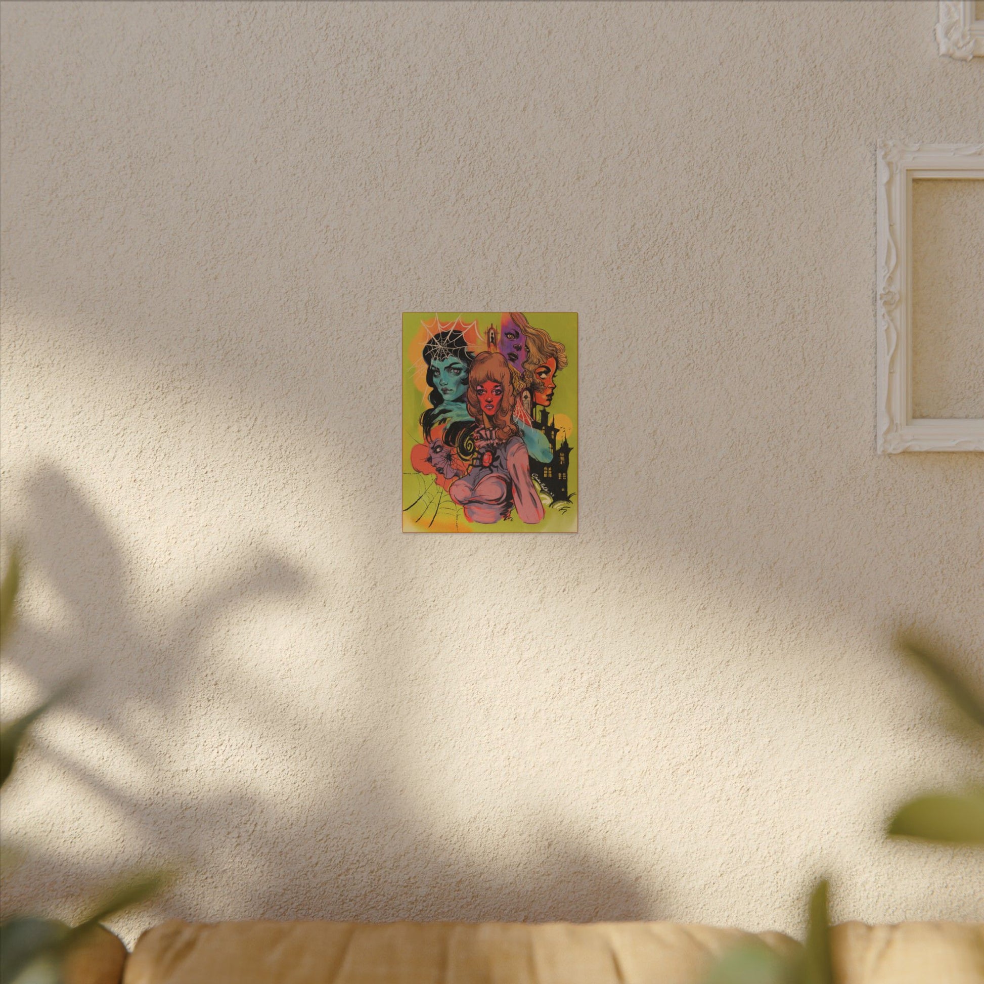 This matte canvas print features the Original Ink Illustration "Raven" by Cristina Beller. Each matte canvas comes with back hanging already included for convenient placement. The frame is made with profile radial pine that is ethically sourced from renewable forests.